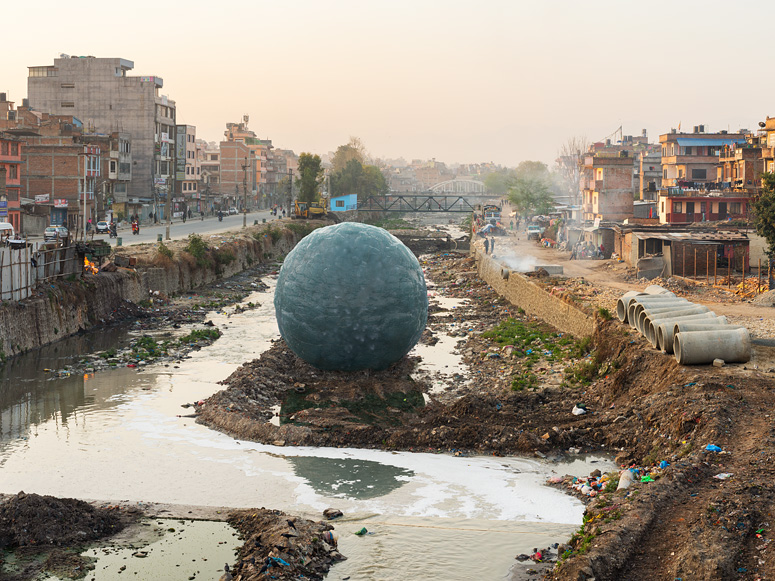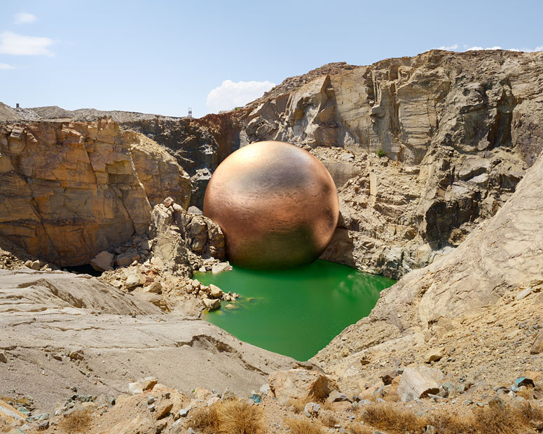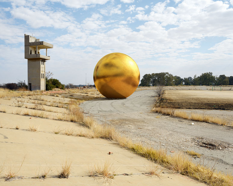 Dans une série intitulée « For What It’s Worth » , Dillon Marsh photographie des installations minières en y ajoutant une sphère représentant le volume qu’on en a sorti en les exploitant.