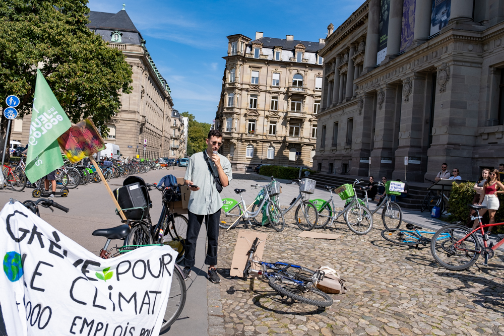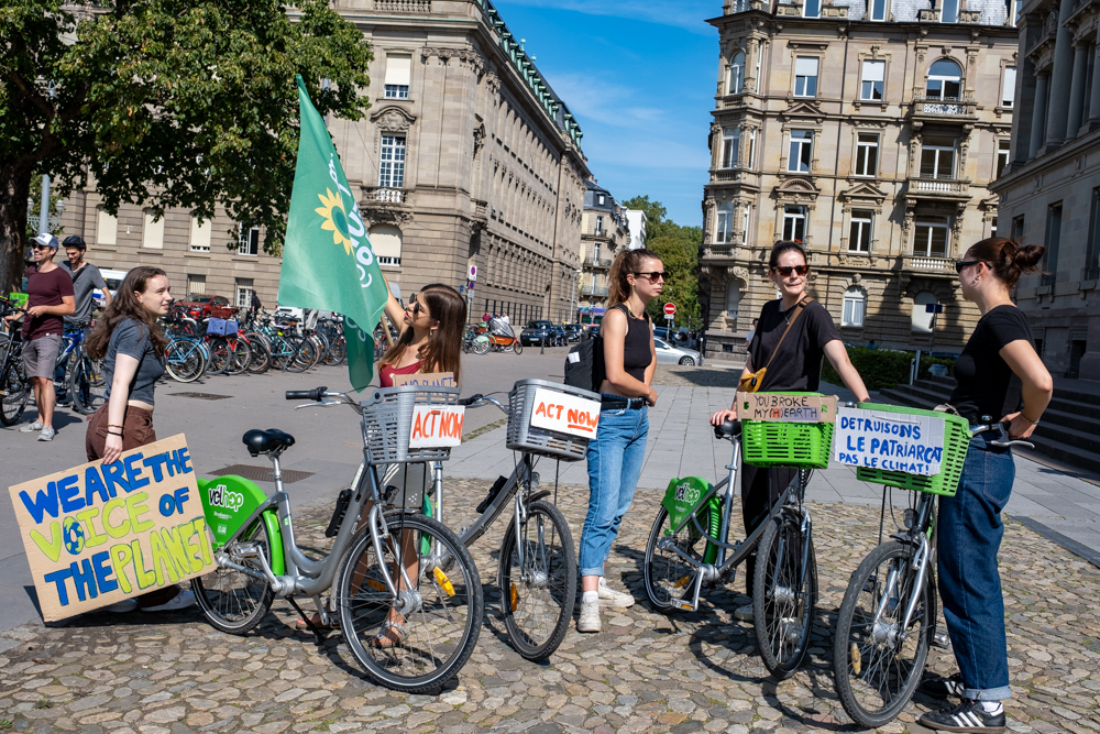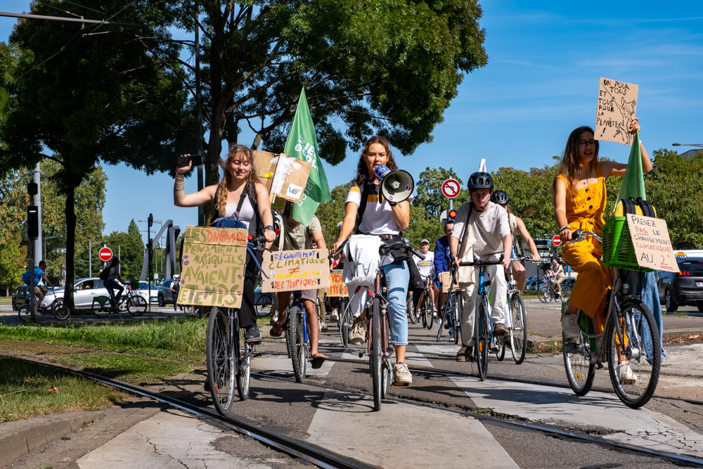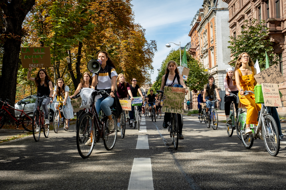 En réponse à l’appel à mobilisation de Fridays for Future, les Jeunes Ecologistes d’Alsace, Fridays for future Strasbourg et Youth for climate Strasbourg ont organisé une vélorution ce vendredi.