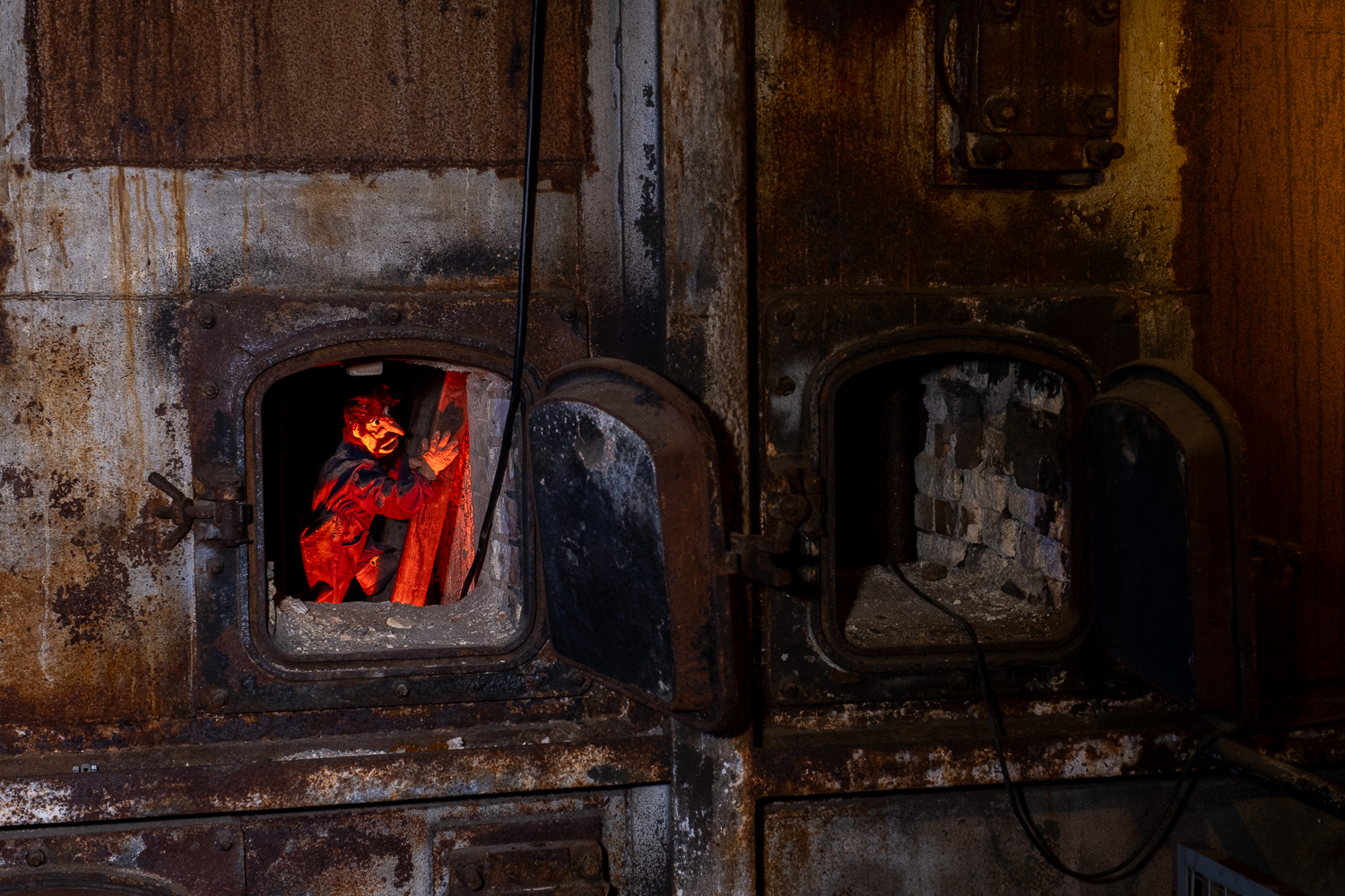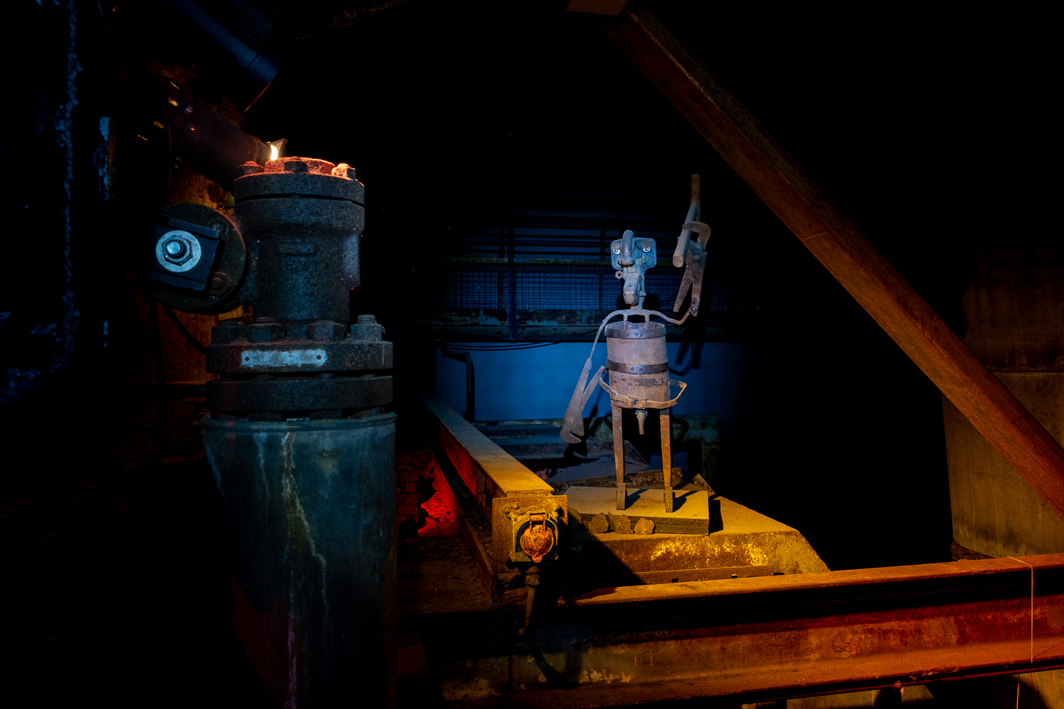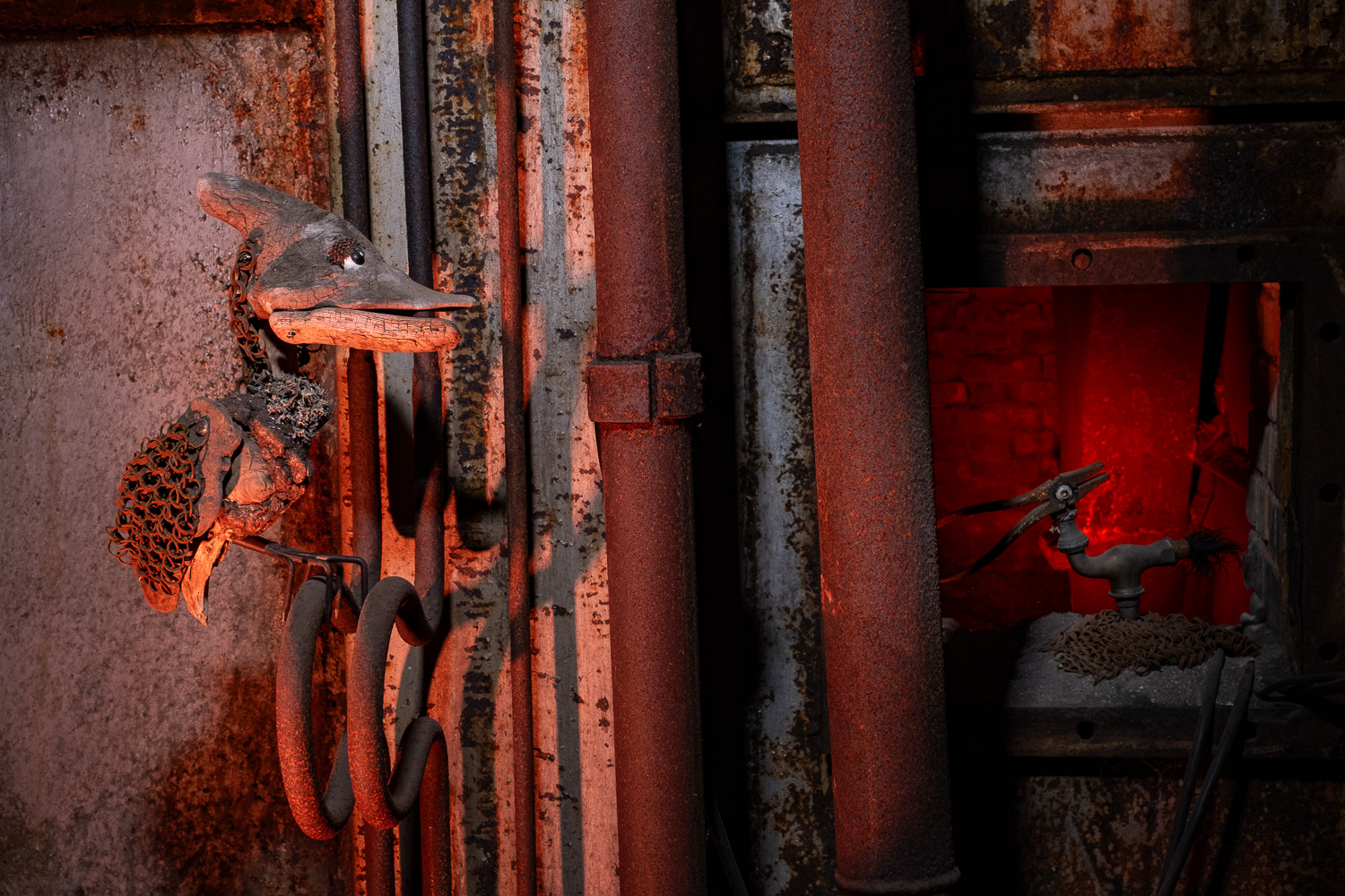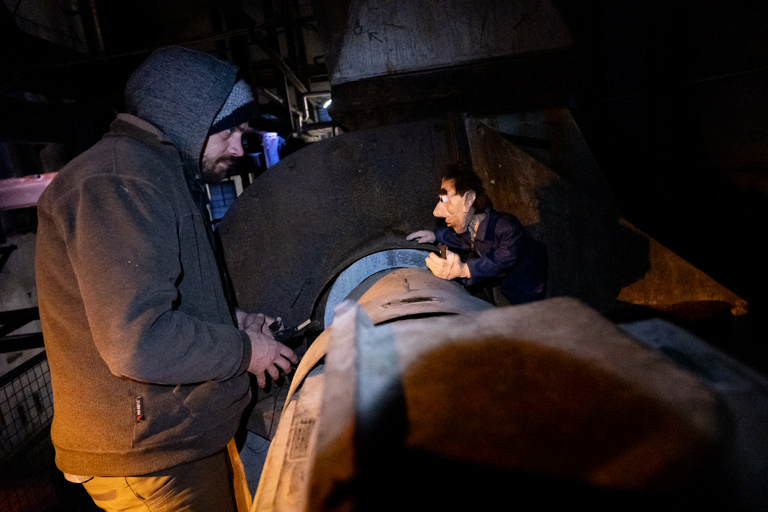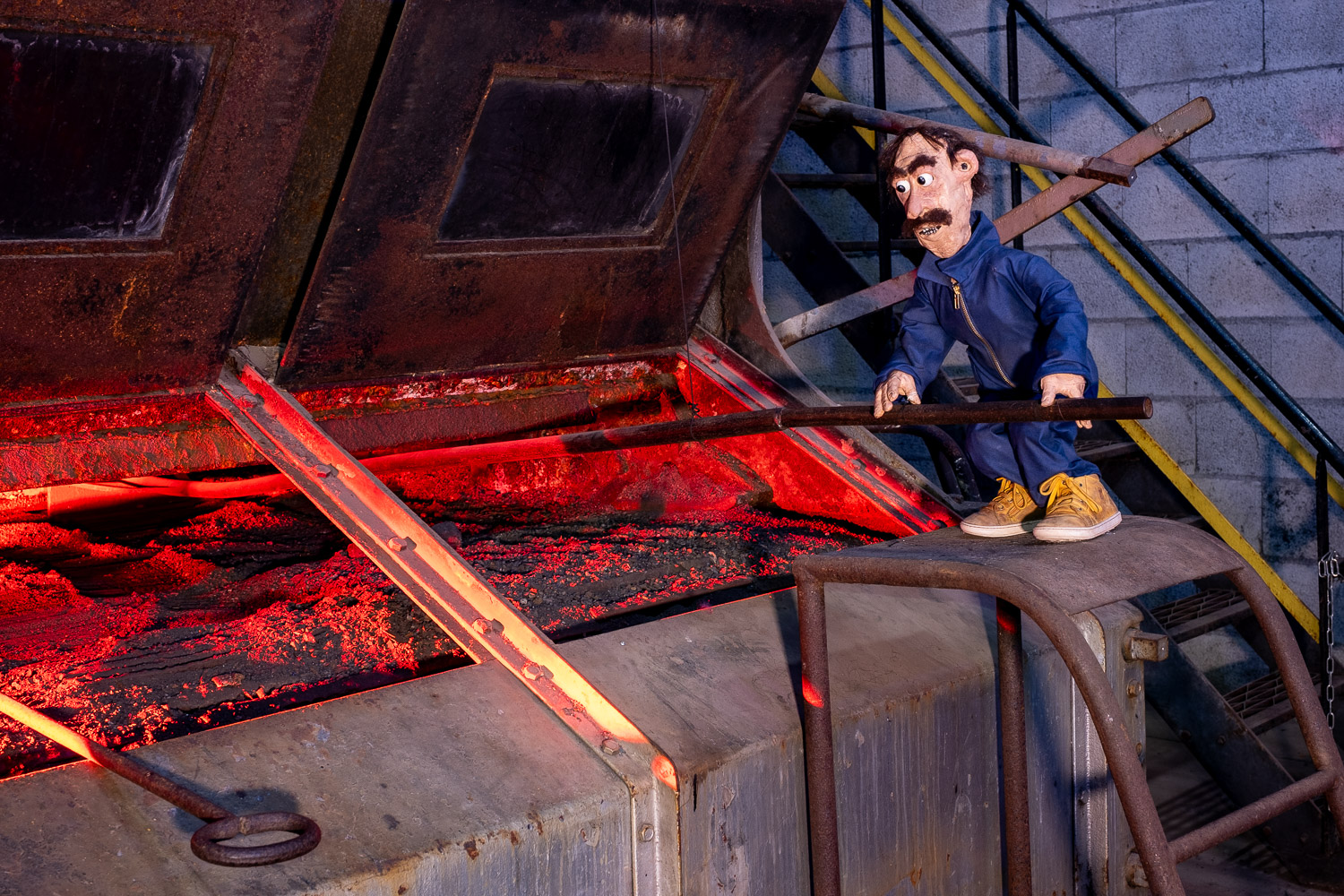 Inspirés par l’atmosphère du lieu, dédale de passerelles et de tuyaux, Martin HUBERT et Nicolas CADIOU ont conçu des ouvriers et des chimères de métal, offrant aux visiteurs une balade en sons et lumières, entre Histoire et imaginaire.