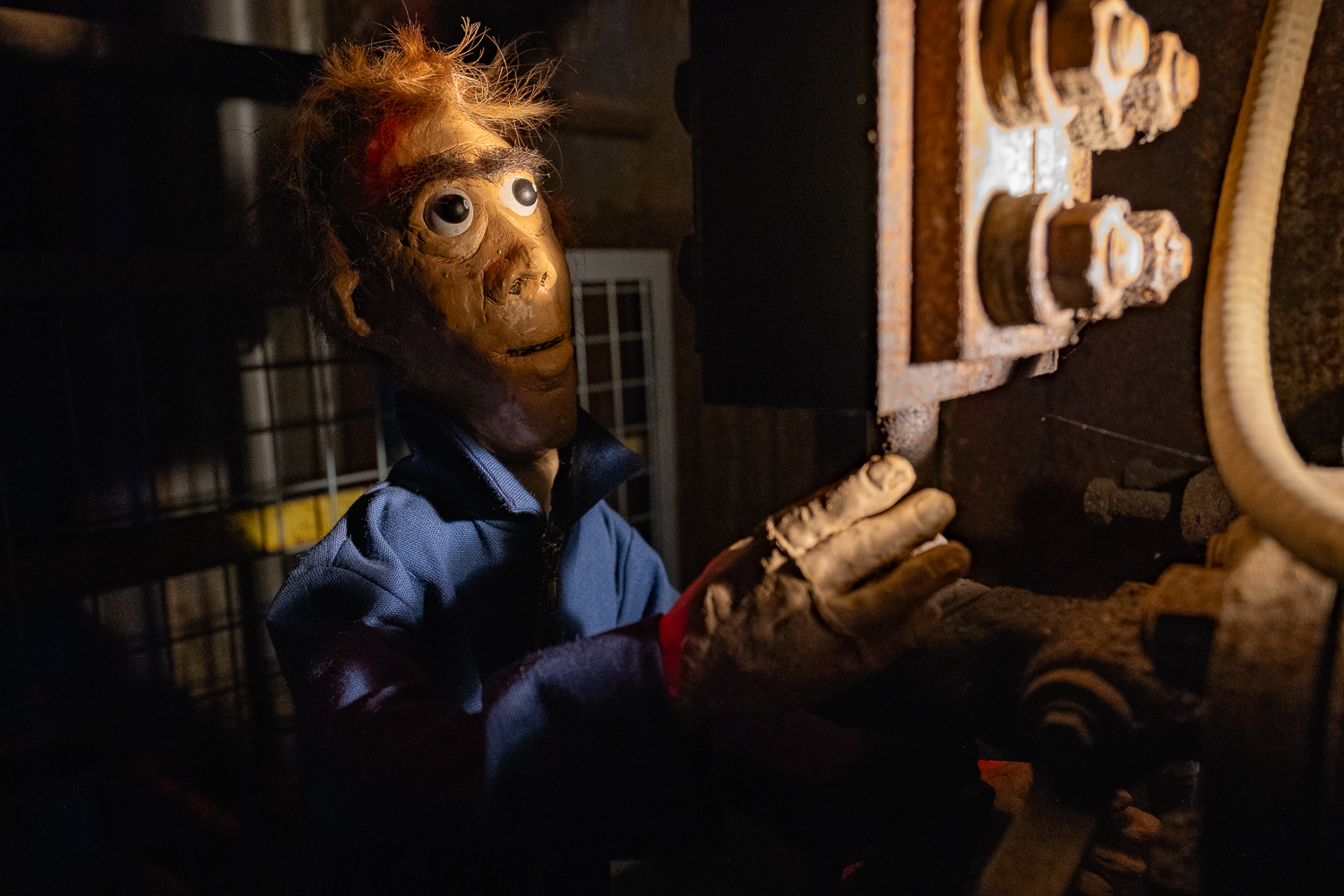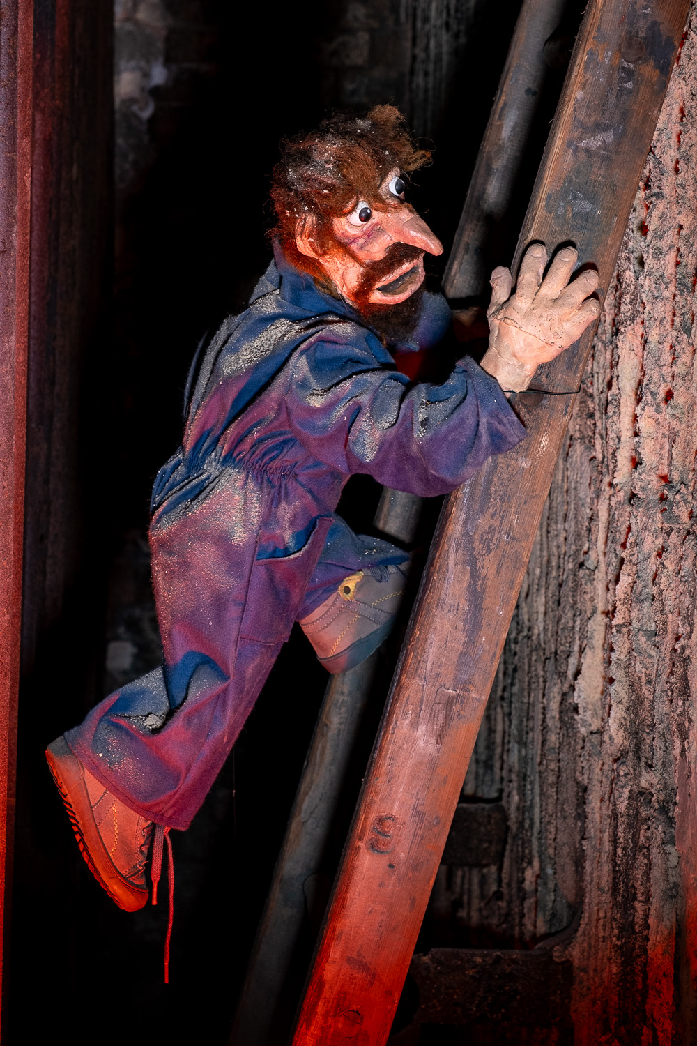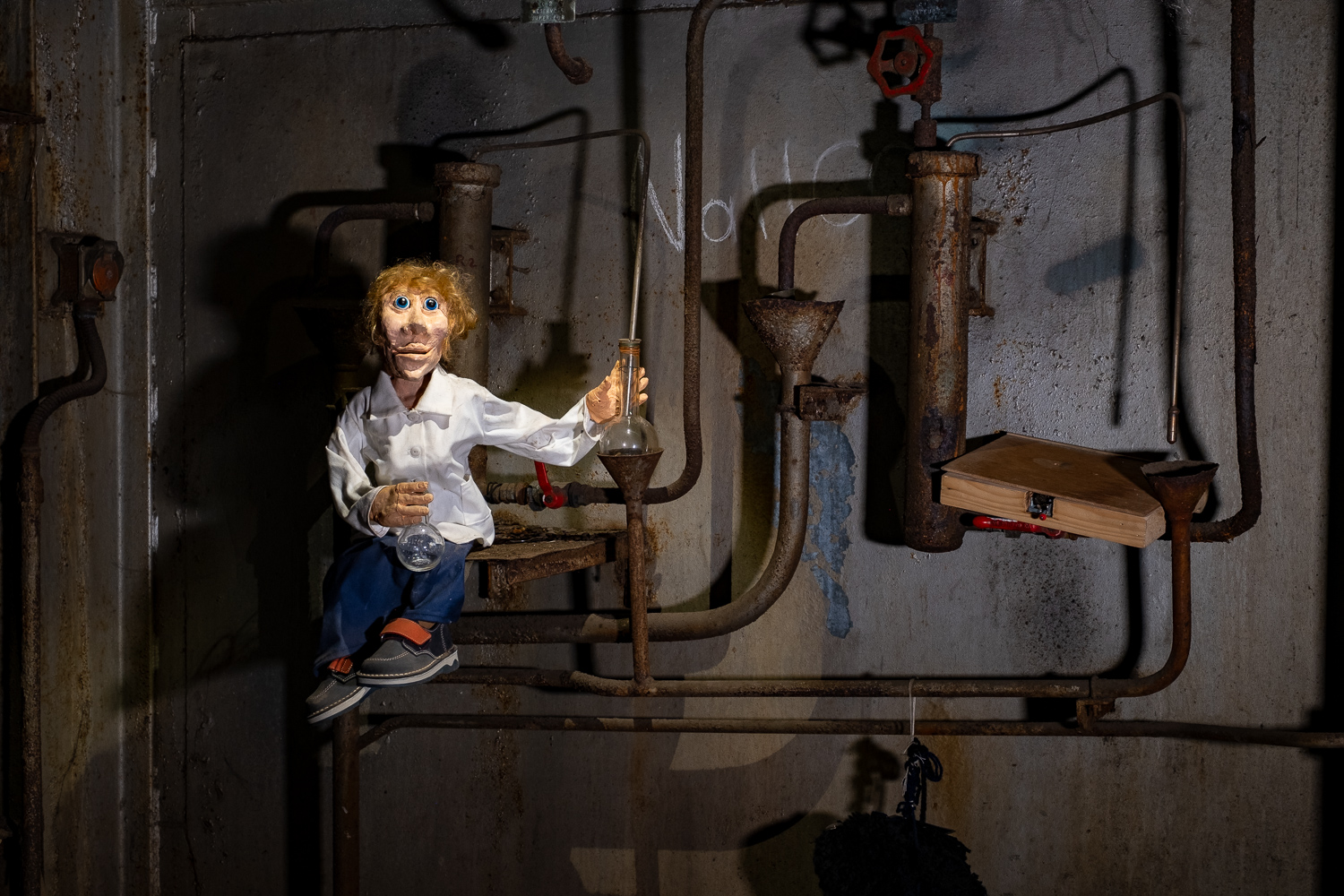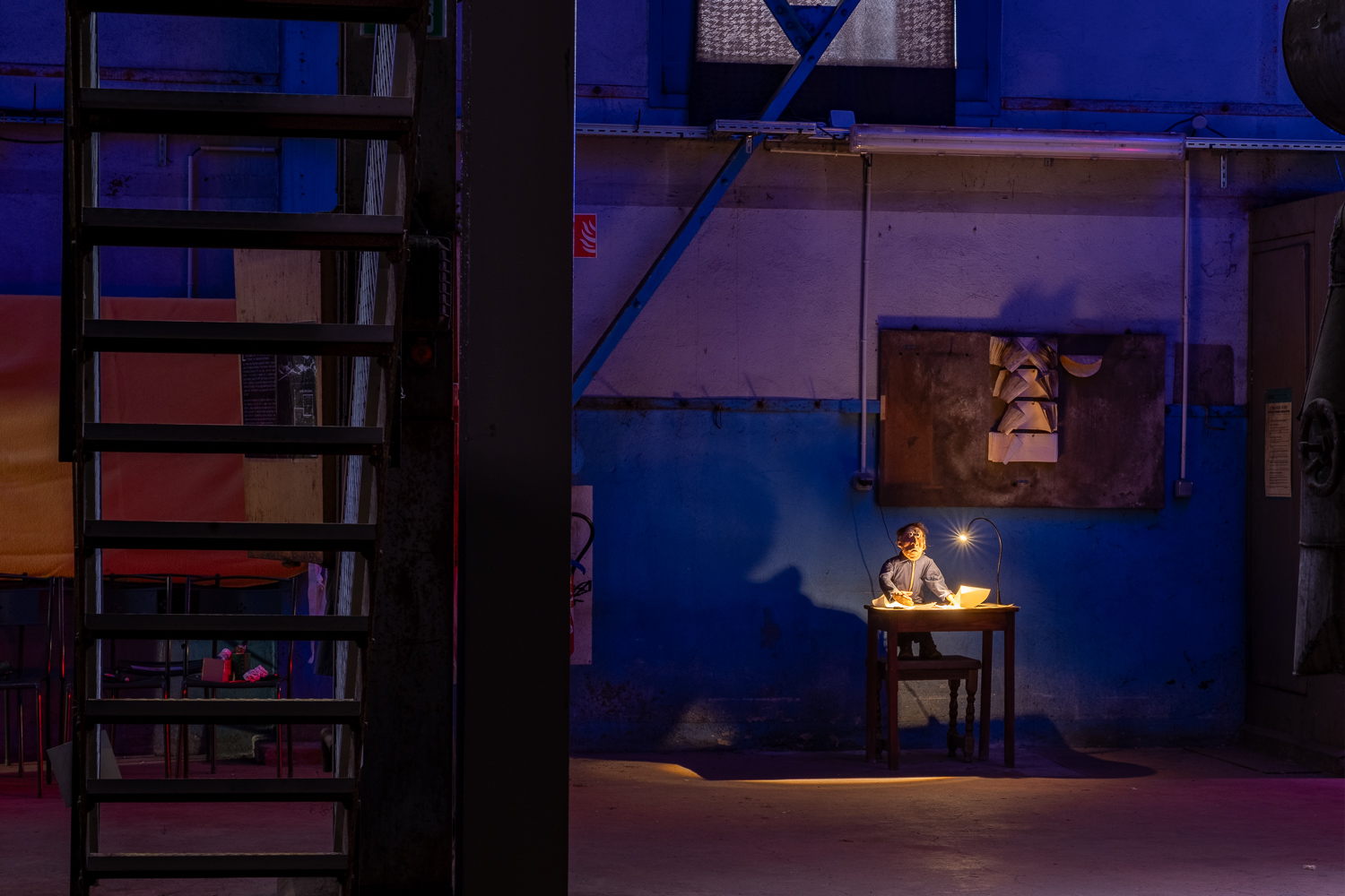 Inspirés par l’atmosphère du lieu, dédale de passerelles et de tuyaux, Martin HUBERT et Nicolas CADIOU ont conçu des ouvriers et des chimères de métal, offrant aux visiteurs une balade en sons et lumières, entre Histoire et imaginaire.