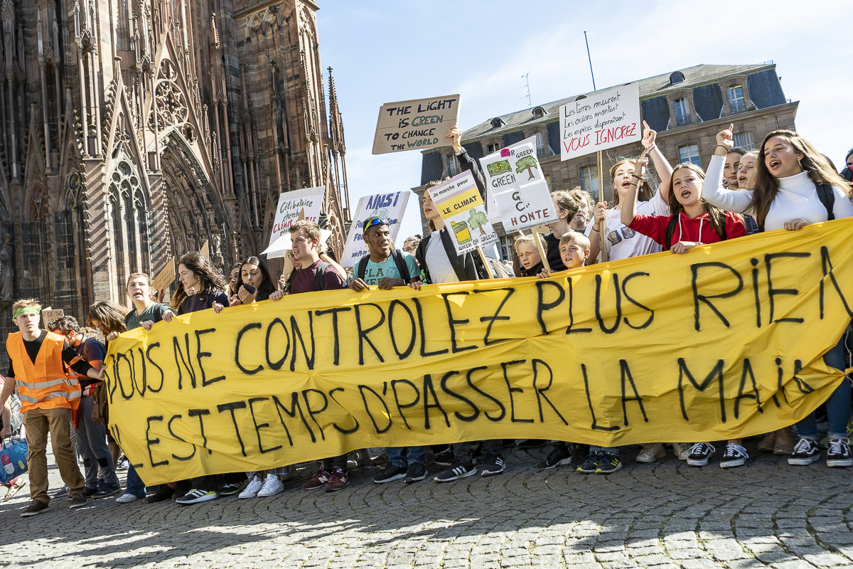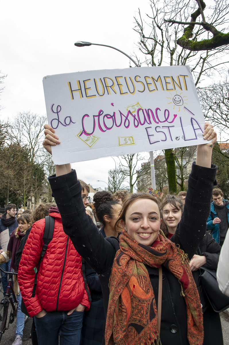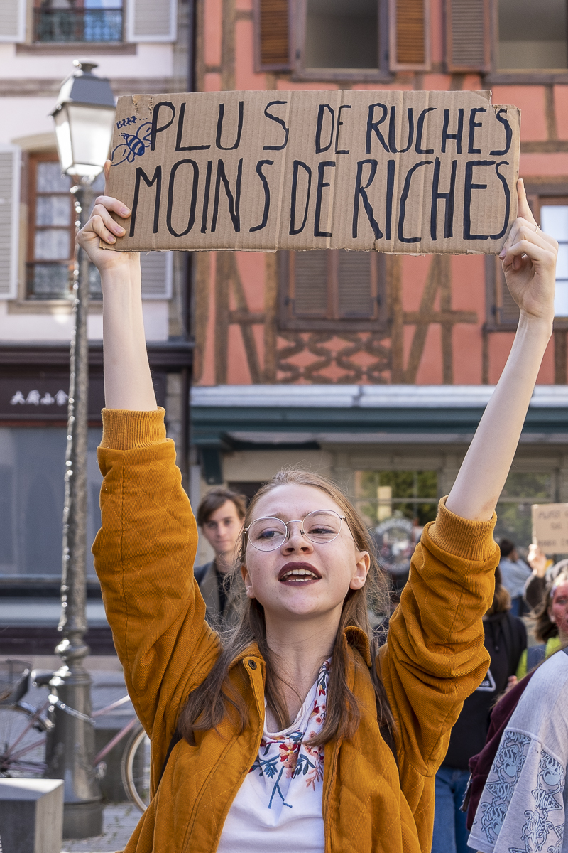 A Strasbourg, je me suis glissé entre les manifestant.es pour les écouter et pour photographier leurs slogans désespérément drôles, souvent percutants, toujours justes. J’ai senti une énergie débordante, une force de vie incroyable, prête à renverser joyeusement nos habitudes de consommation devenues mortifères ….