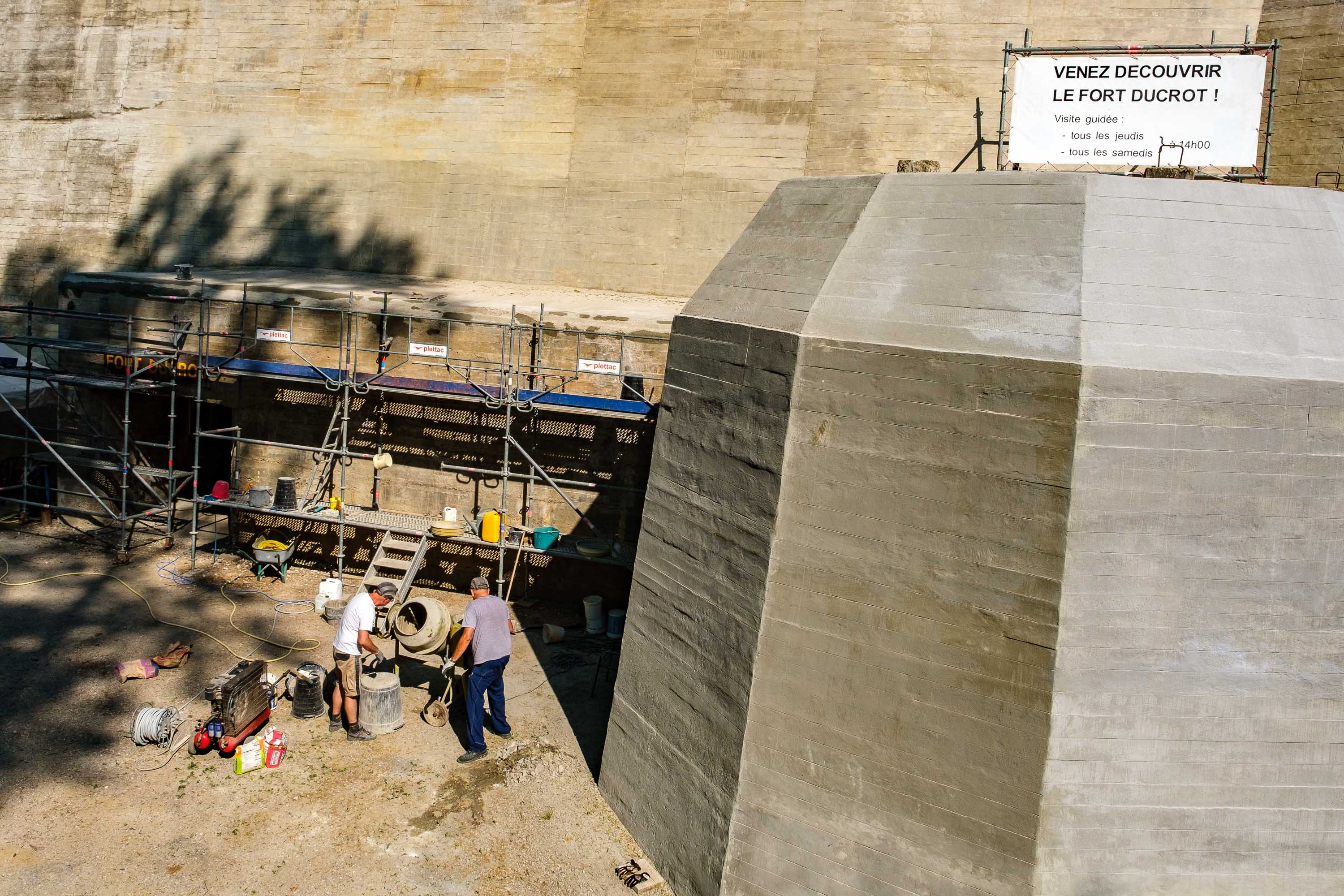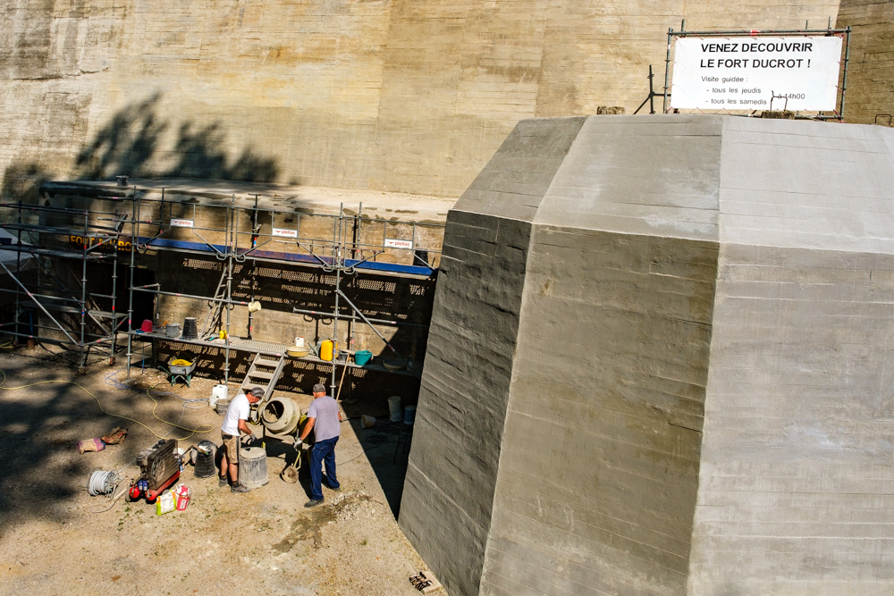 Laissé à l’abandon par l’armée, racheté par la commune de Mundolsheim dans les années 1990, il est réhabilité et rénové patiemment par les amis du Fort Ducrot depuis 2010. Tous les jeudis et samedis, les entrailles du fort résonnent du pas des hommes et vibrent du bruit des machines dans un brouillard olfactif varié.